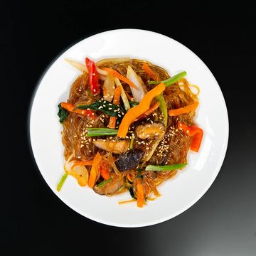 Beef bulgogi with sweet potato noodles, vegetables & mushrooms